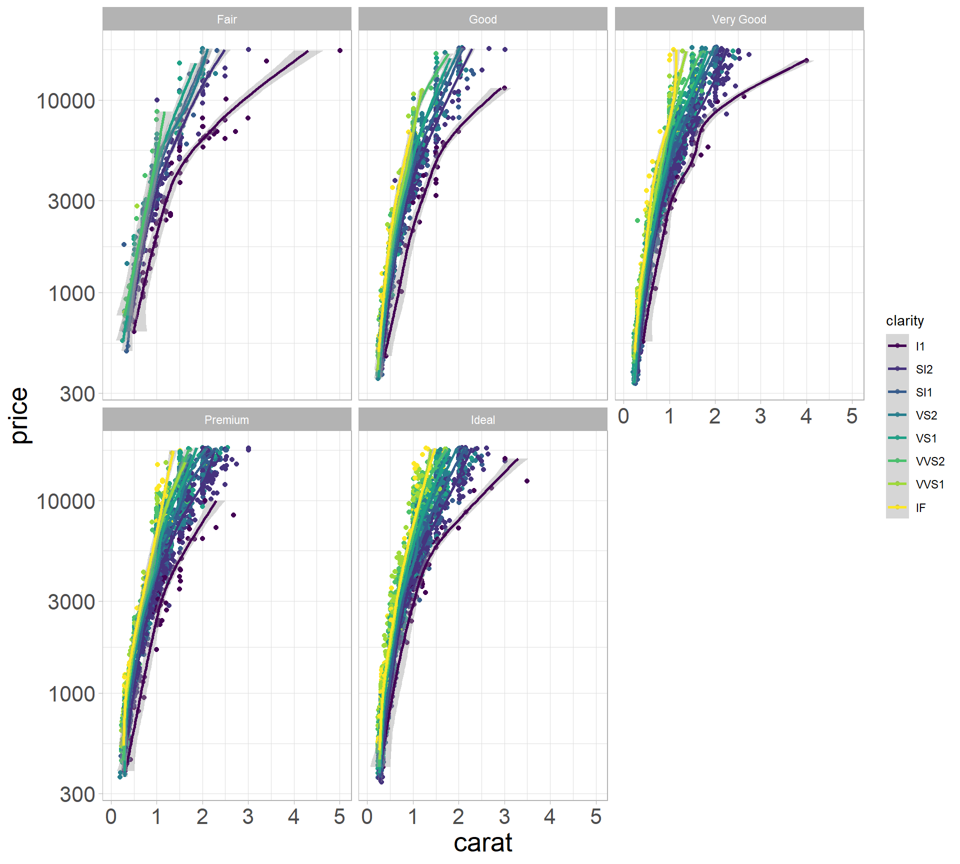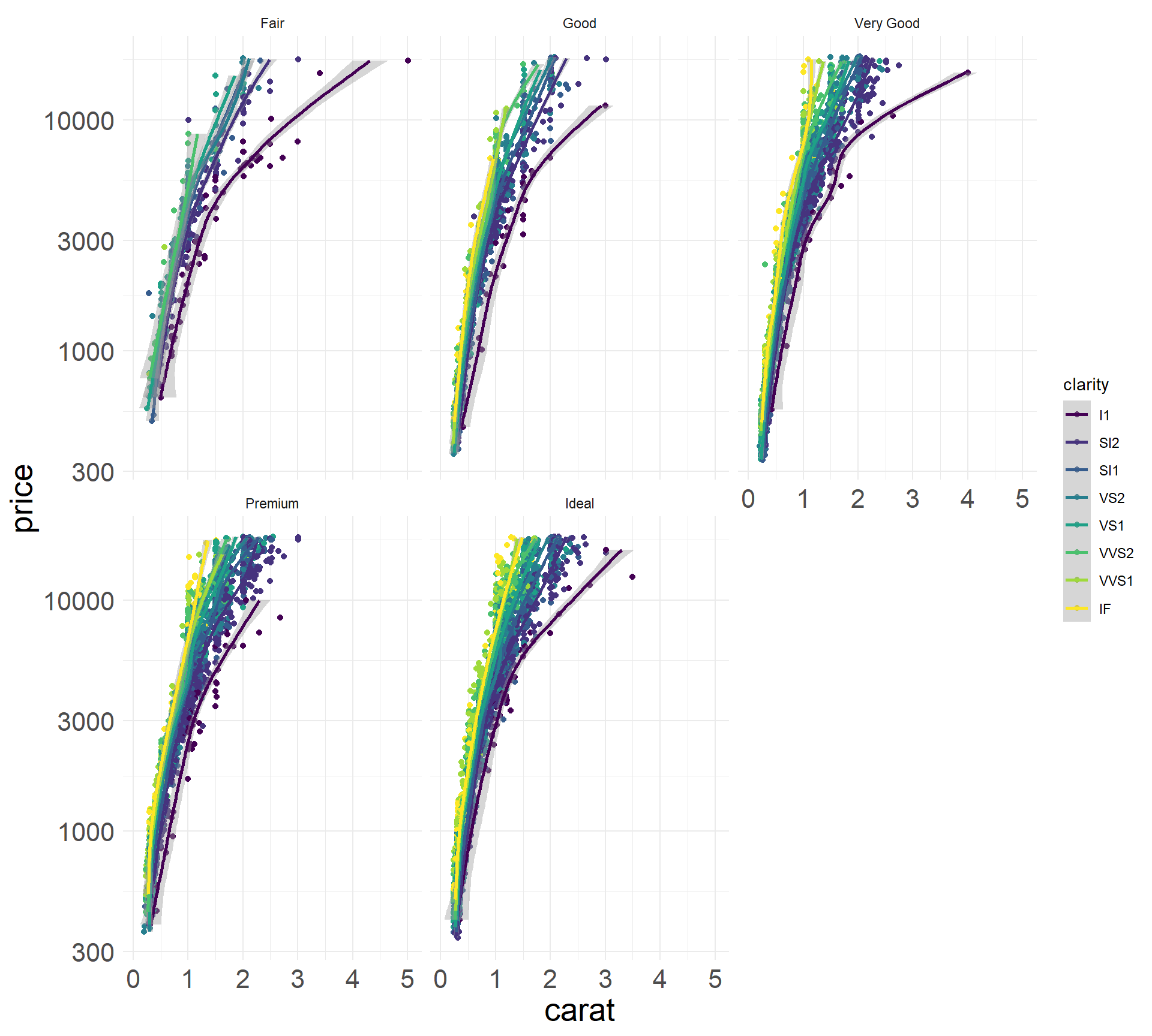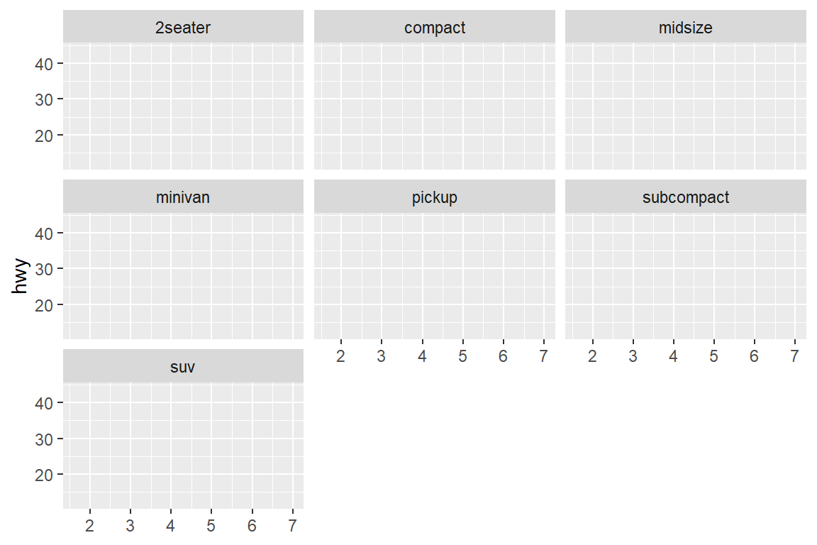 Facets divide plot into subplots based on the values of one or more discrete variables.