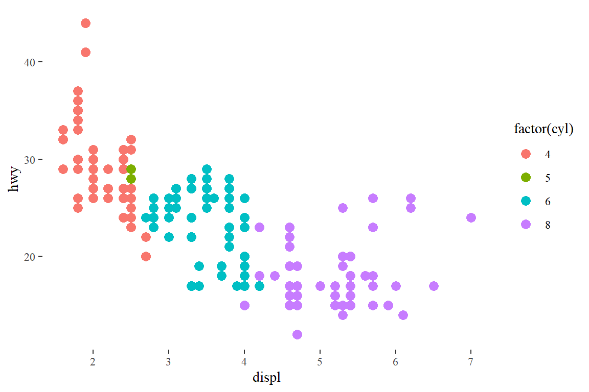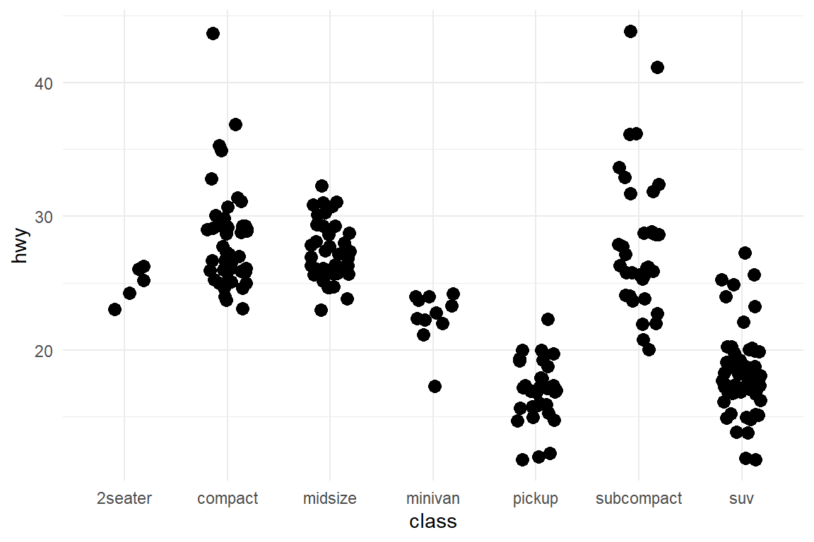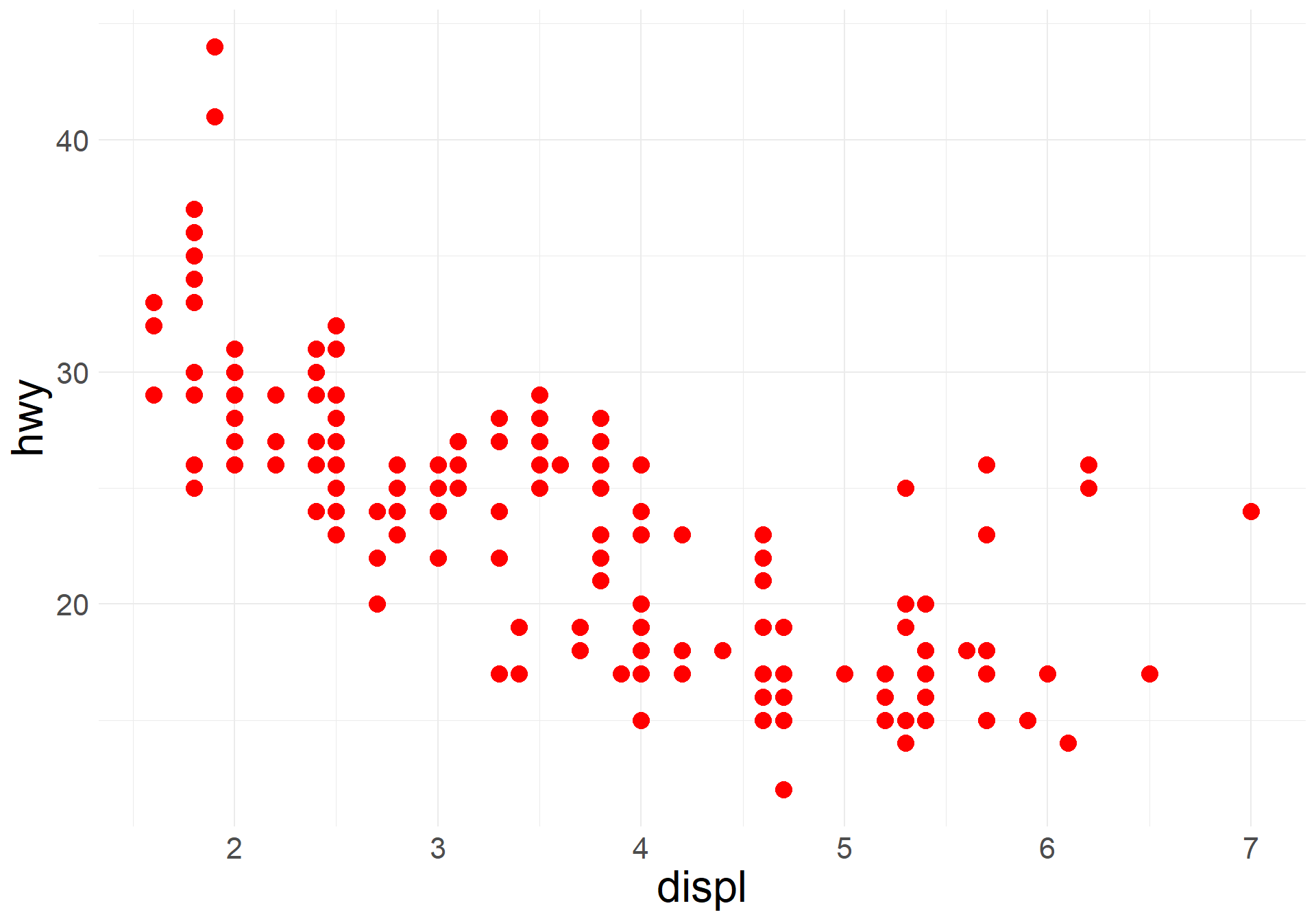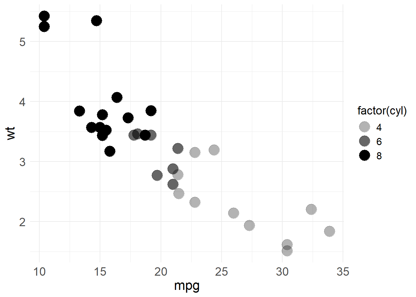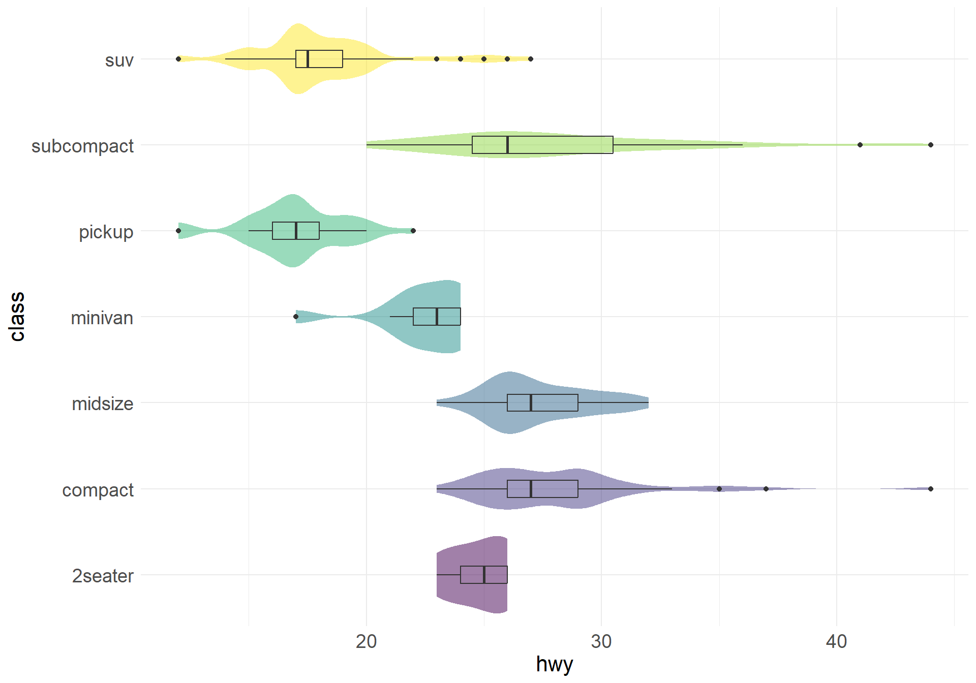 Use the mpg data to recreate the plot shown on the right. You may use the following parameters: