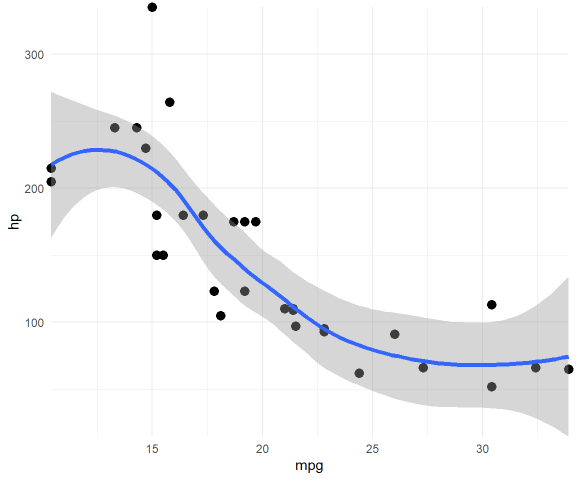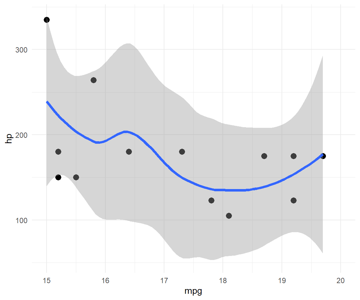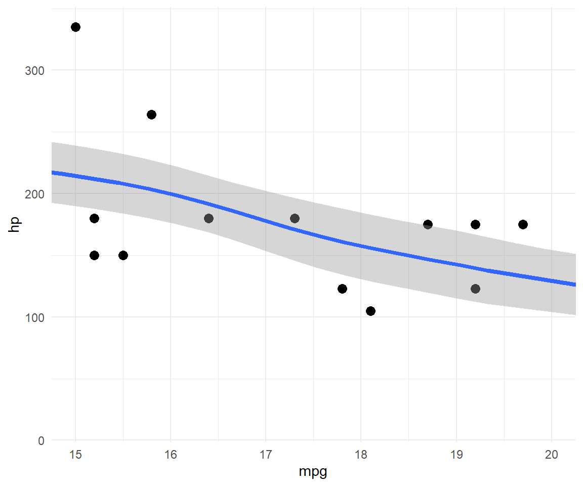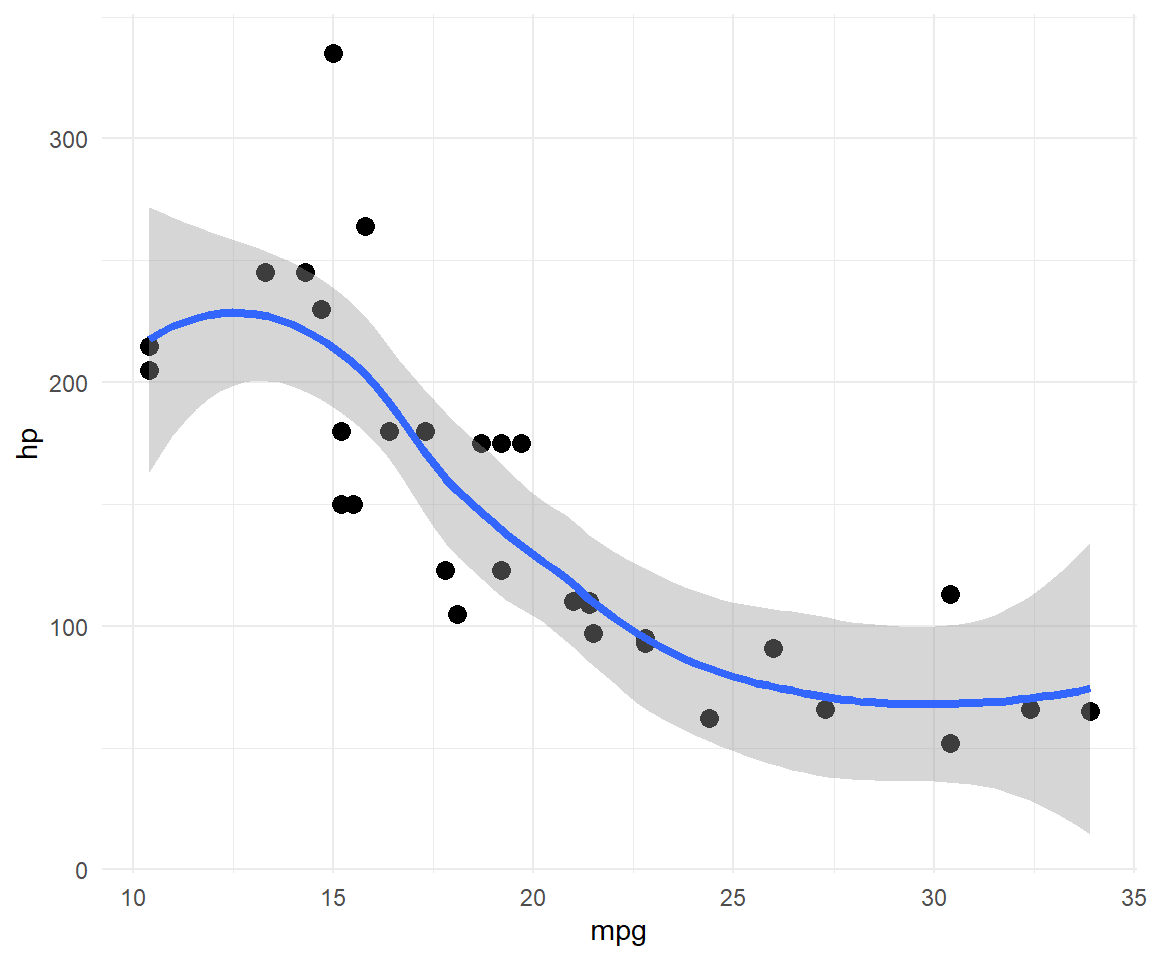 Use the mpg data to recreate the plot shown on the right. You may use the following parameters: