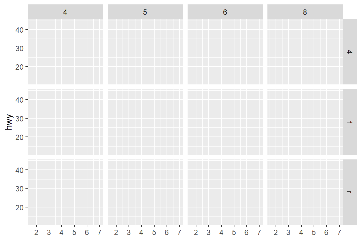 produces a 2d grid of panels defined by variables which form the rows and columns